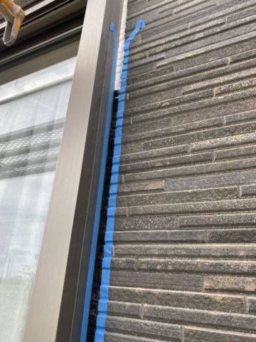 塗装の前にコーキングの打ち替え、増し打ちしました。 塗装の際は必ずコーキング処理をします。